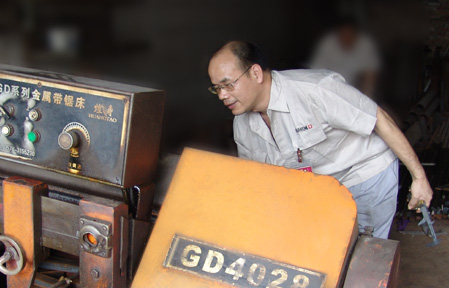 梁师傅在调试机器